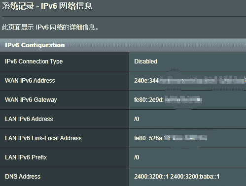 重新拨号号后系统记录-IPV6中查看是否获取IPV6,如图。